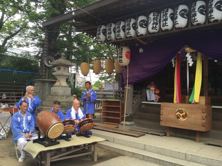 丸子山王祭 奉納演奏では、囃子保存会の少年部のみなさんがお囃子を披露してくださいました。