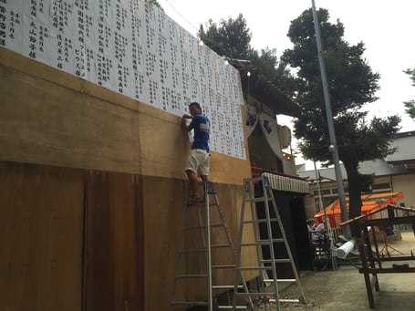9町会のたくさんの人のご尽力で守られている伝統行事「丸子山王祭」で働く人びとを日枝神社境内で取材してきました。
