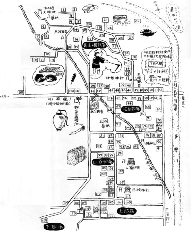 神奈川県橘樹郡中原村大字上丸子(青木根・松原・山谷・上・下の集落)