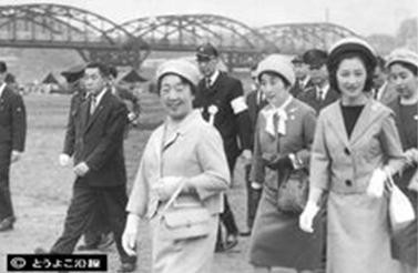 丸子橋を昭和40年に訪問された当時の昭和皇后陛下と美智子妃殿下の貴重な写真です。